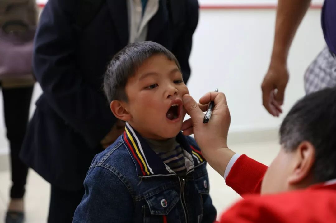 啟動儀式結(jié)束后,車民副市長、洪董、楊總及各位領(lǐng)導(dǎo)在韓醫(yī)生的帶領(lǐng)下,一同去往篩查現(xiàn)場看望正在進(jìn)行篩查的孩子們。