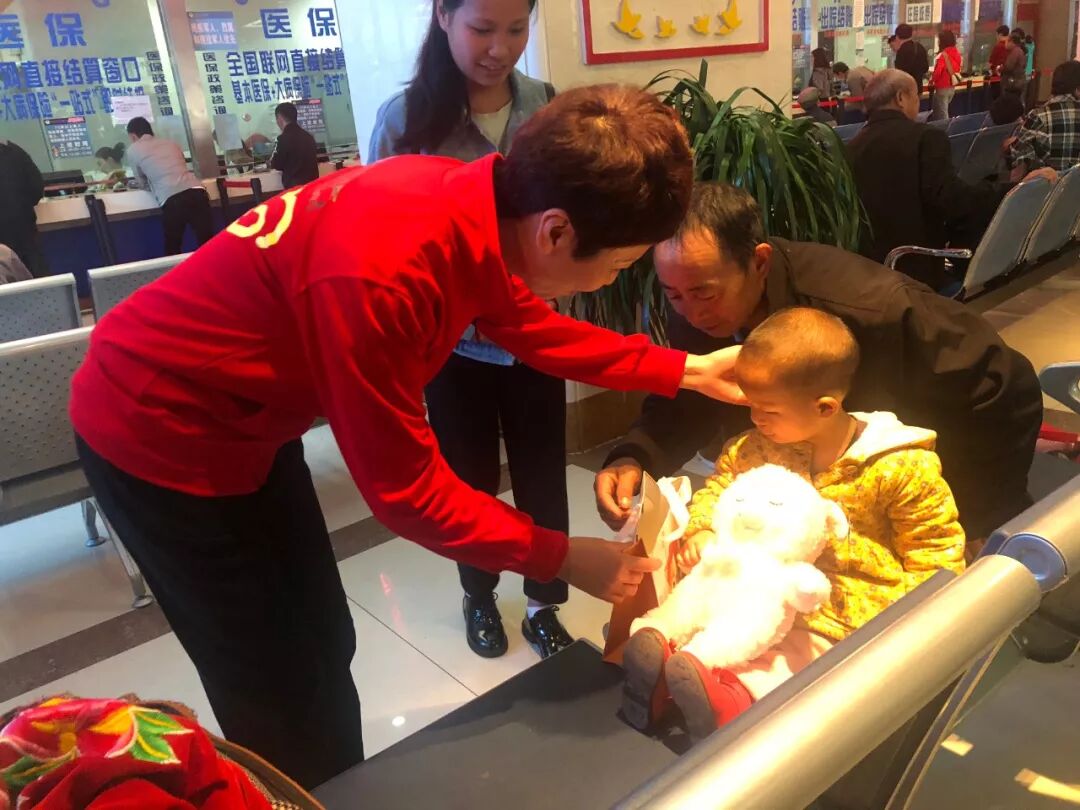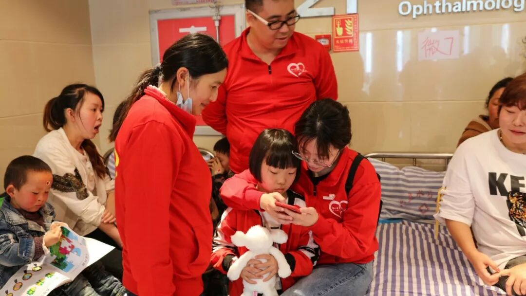 為了緩解患兒的緊張和擔(dān)憂,志愿者們對患兒進(jìn)行互動和心理安撫。